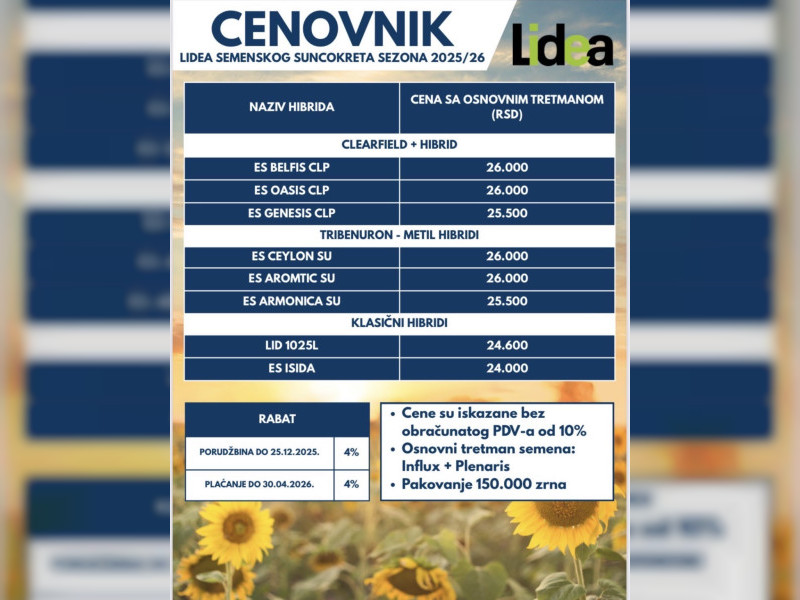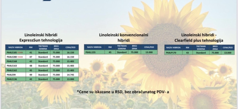 - Tehnologije: expres, clearfield i konvencionalni hibridi, prilagođeni različitim sistemima zaštite.